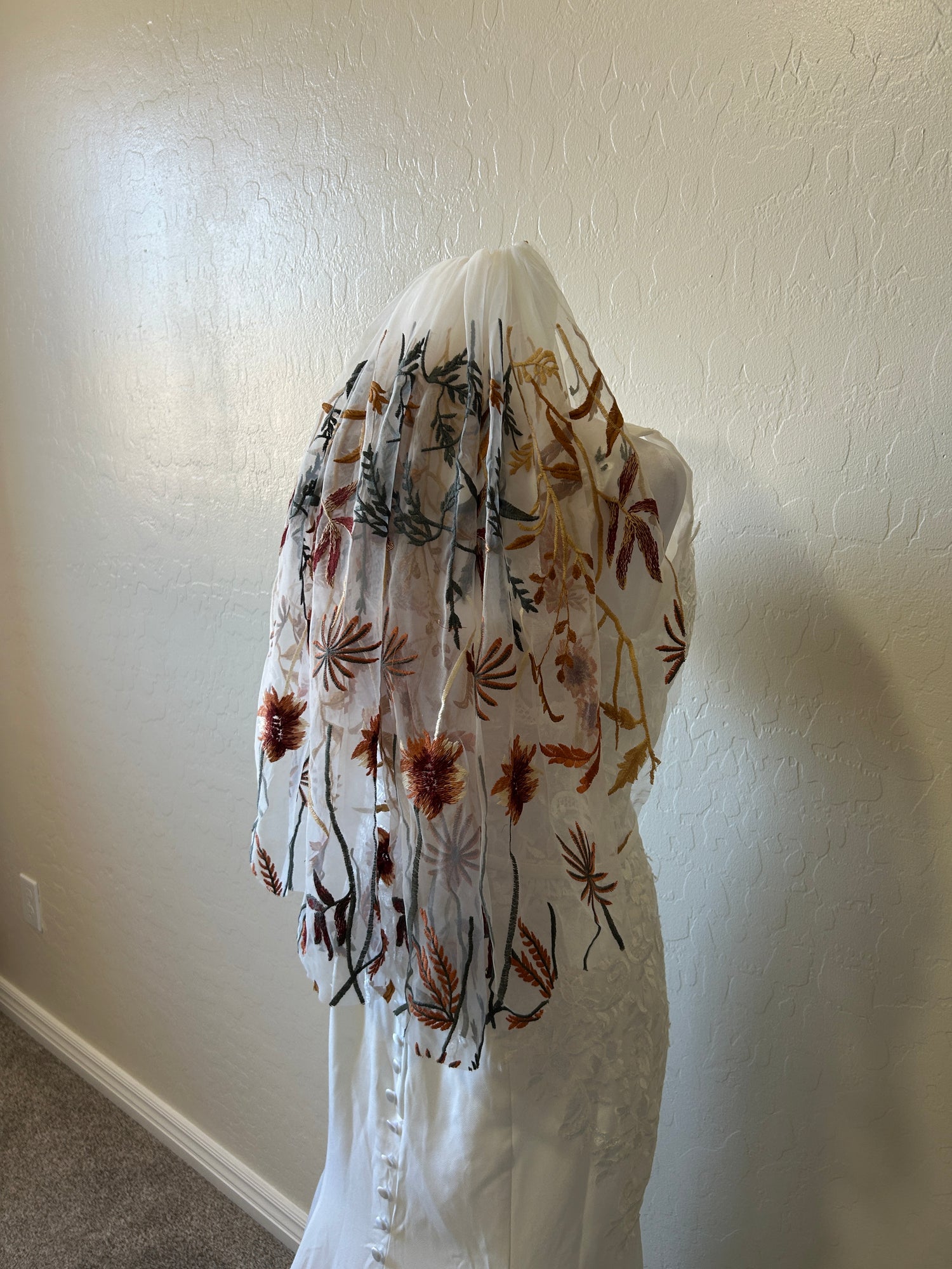 I’d be truly honored to create your wedding veil for one of the most important days of your life. Each veil is handmade to order using beautiful floral embroidered fabrics in my private studio. When I got married in 2020, I wished I had more unique options to choose from. So now, I design the veils I once dreamed of finding!