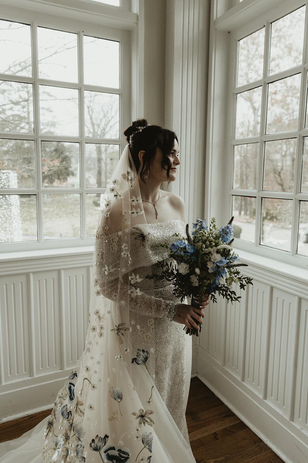 Browse our made to order floral embroidery wedding veils and matching accessories
