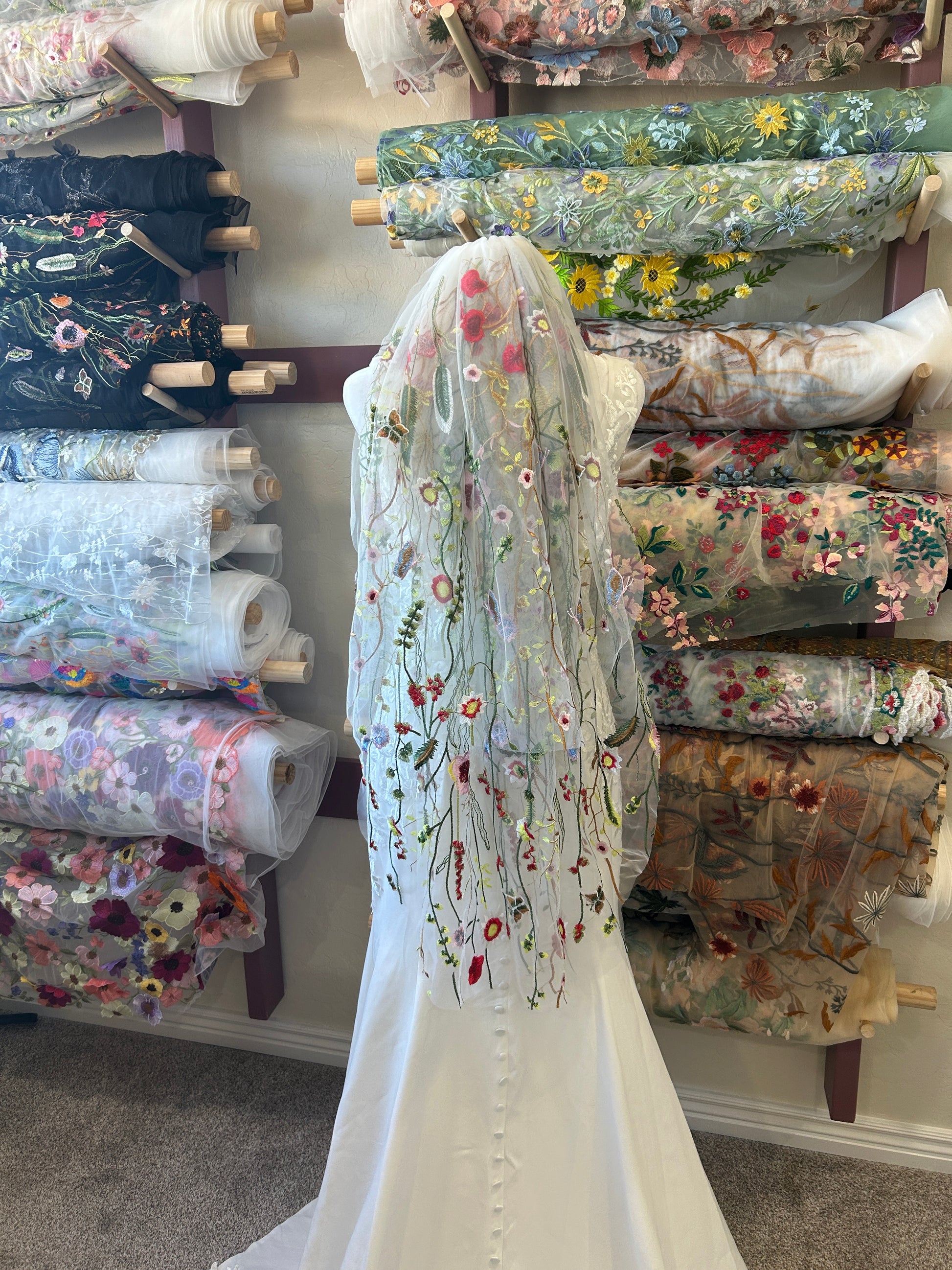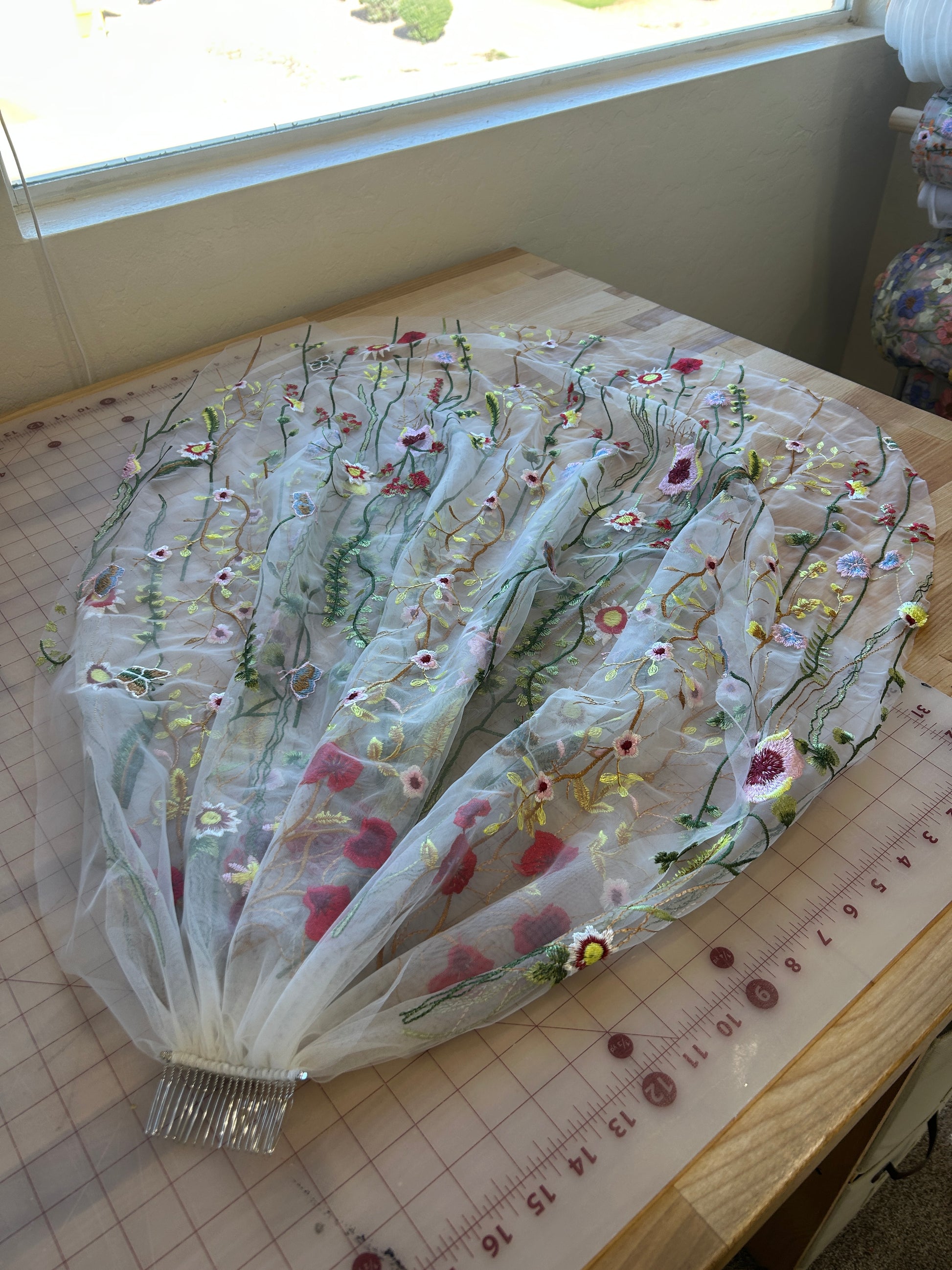 Double-layered floral veils are simply adorable, and I truly enjoy creating them. These veils are one-of-a-kind and not part of my regular stock, making them extra special! Plus, they are ready to ship, so no need to wait 3 weeks like with my made-to-order veils.