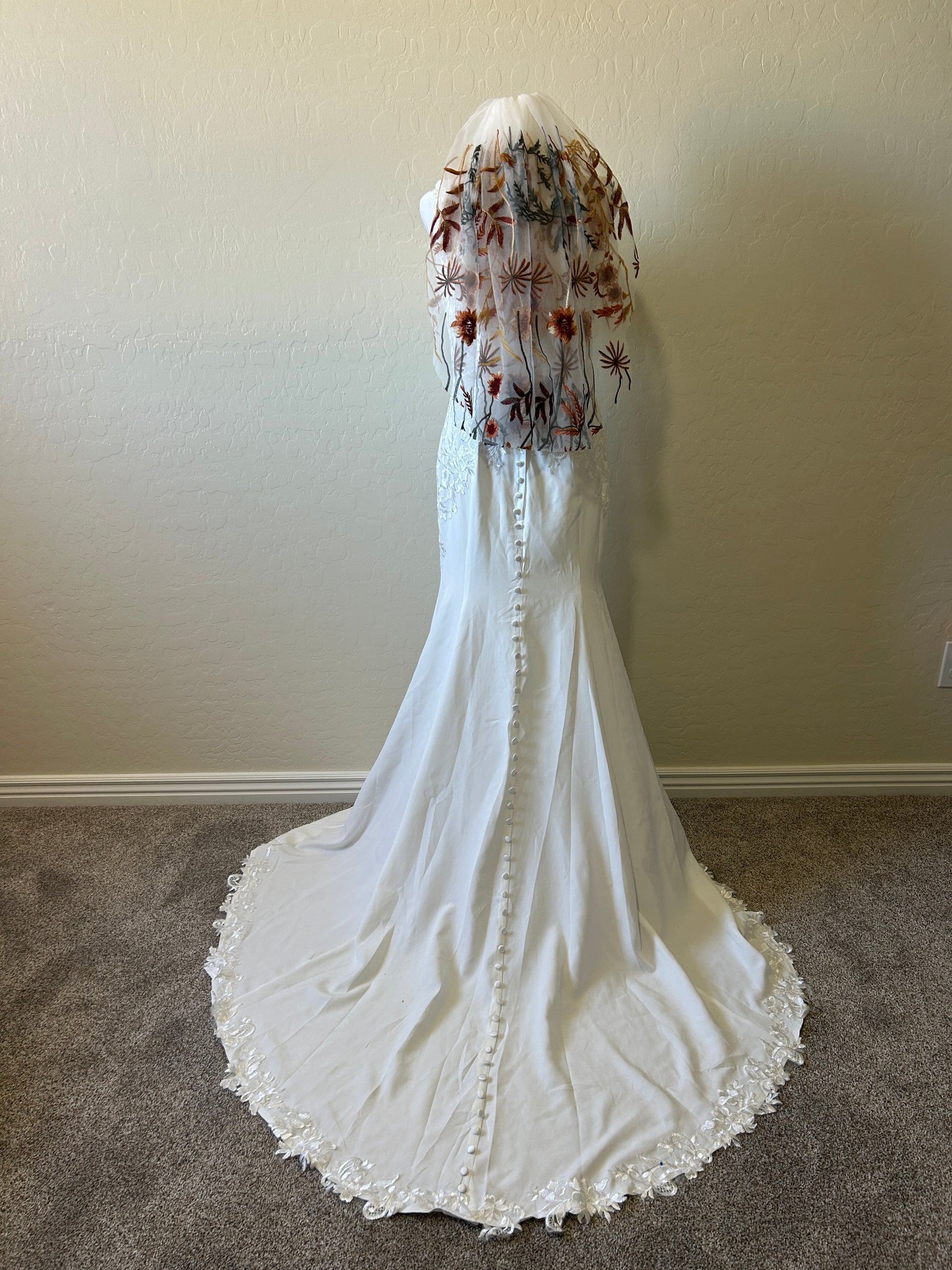 - Customized items are not eligible for exchange such as; cape conversion, embroidery initial/name add-on, pearl add-ons, swatches, or anything such as likeness that is customizing. Any of our appliqué based veils are not available to exchange .
