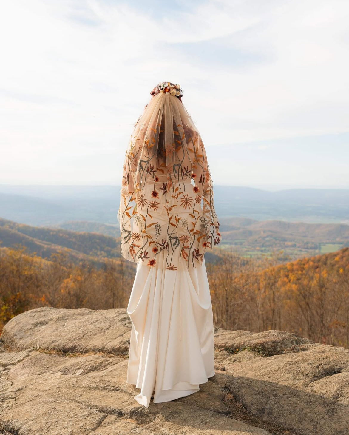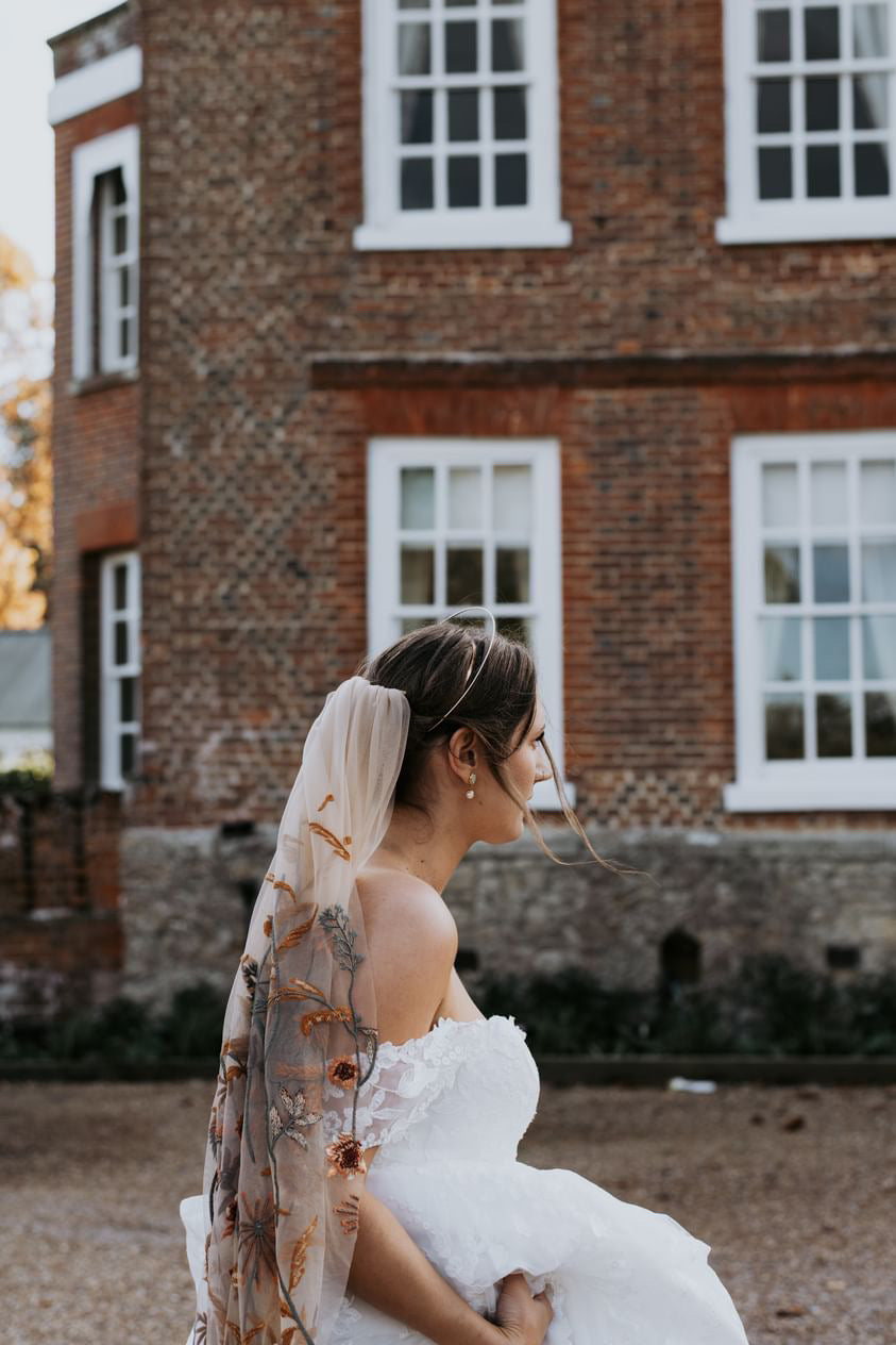 Autumn Leaves Falling Veil | TAN TULLE | Floral Wedding Veil