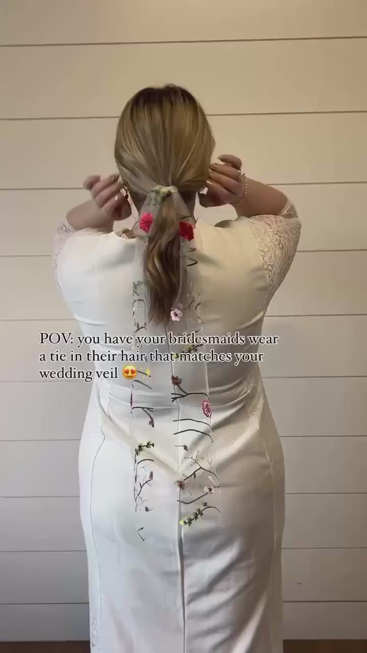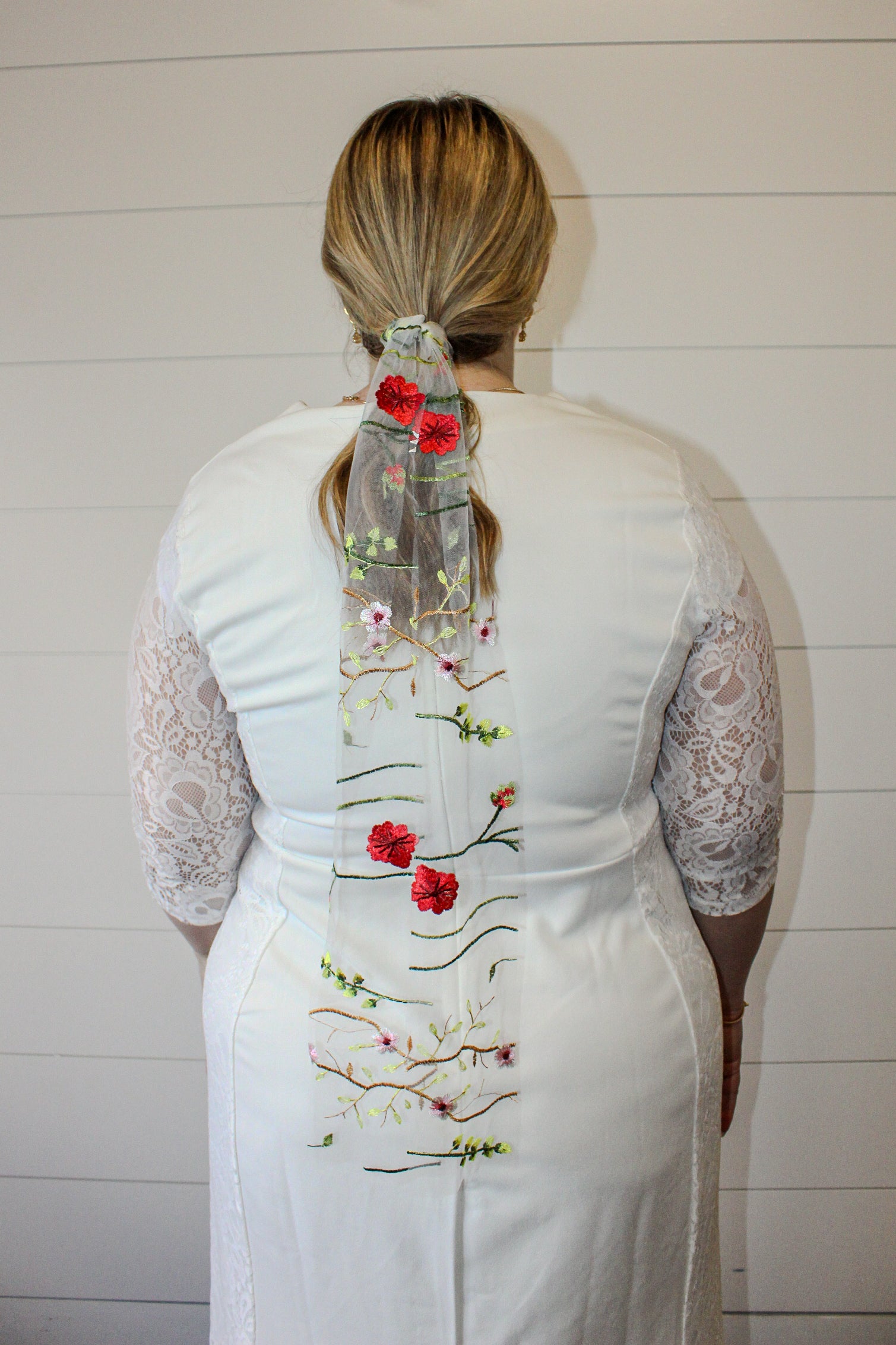 This floral tulle hair wrap tie is the perfect option if you don't want to wear a veil for your big day! Simply wrap on your pony tail or bun and you're ready to go. These are also great for wrapping around bouquets, for bridesmaids and even flower girls! These are made from scraps left over from veil making - yay for less waste!