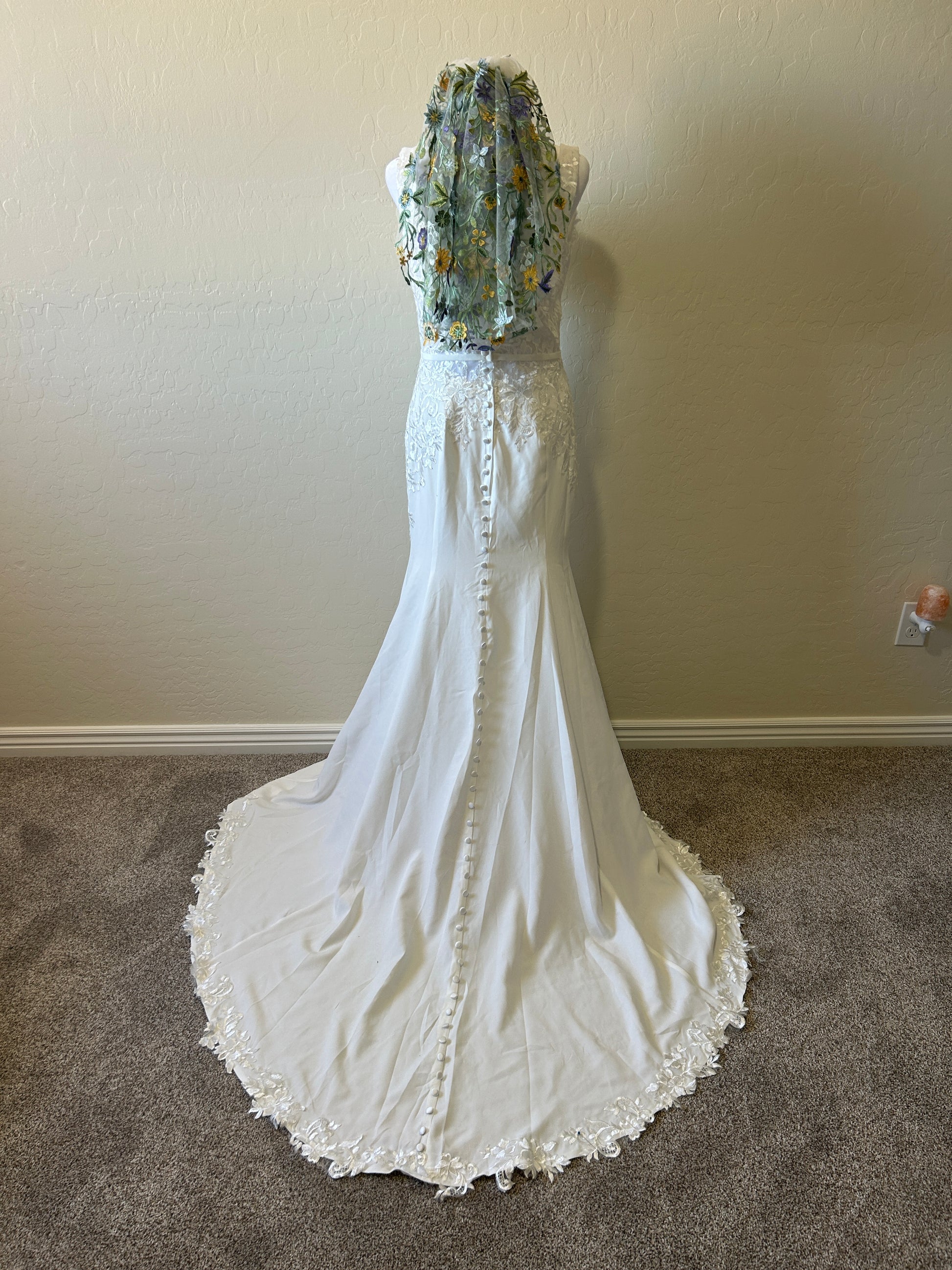 - Customized items are not eligible for exchange such as; cape conversion, embroidery initial/name add-on, pearl add-ons, swatches, or anything such as likeness that is customizing. Any of our appliqué based veils are not available to exchange .