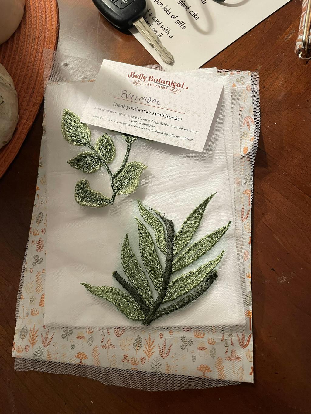 If you’re considering one of my veils, I always highly recommend ordering fabric samples before committing to your veil or accessories. I want you to feel completely confident in your choice and fabric samples can really help with that! Bring them along to your dress fittings, or use them when coordinating suits, bridesmaid dresses, and other wedding details. You’ll be able to see and feel the quality, craftsmanship, and beauty of the fabric firsthand! Plus, experience your first order from Belle Botanical Creations!