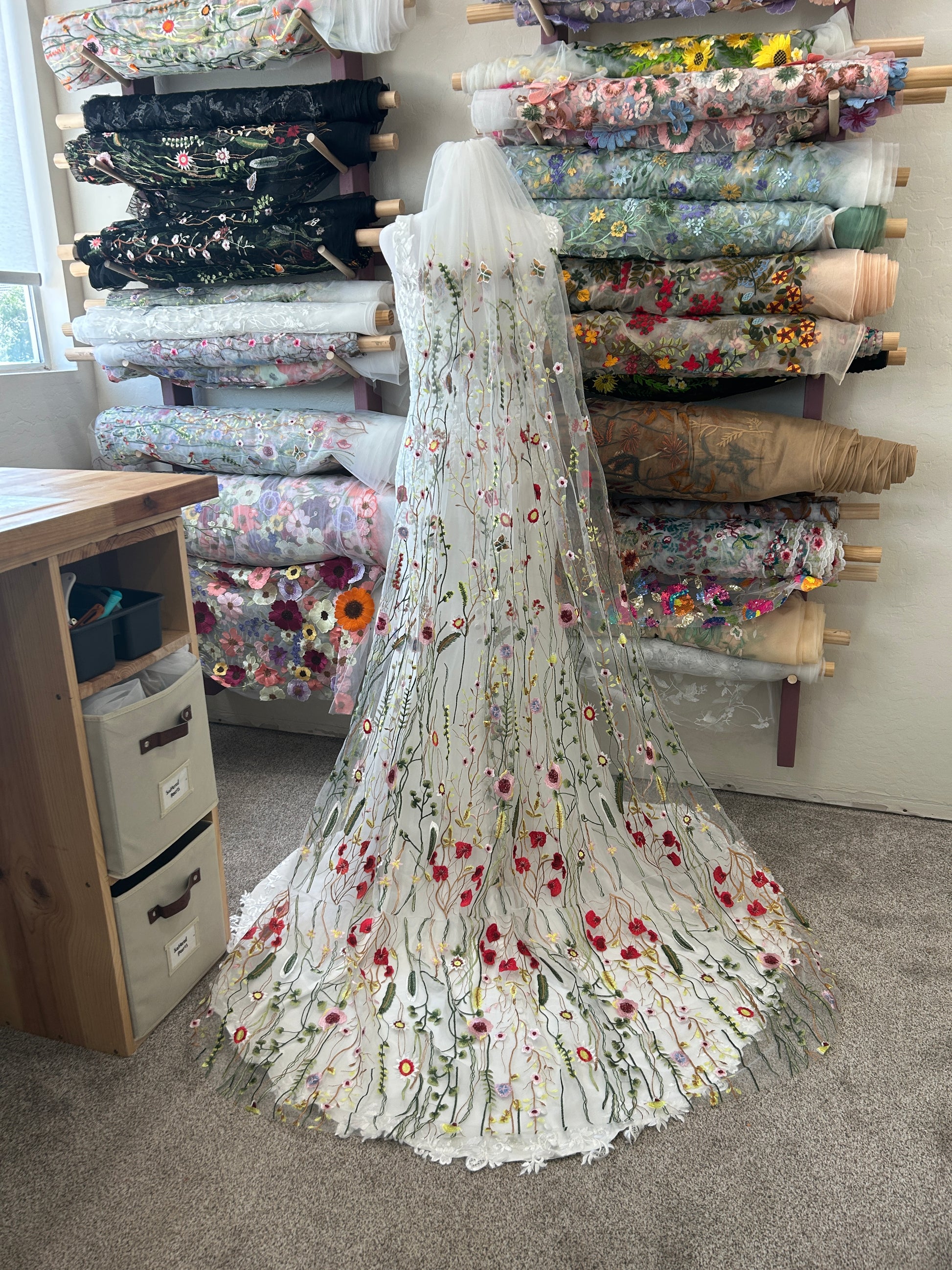 My daughter ordered the vibrant wildflower veil, floor length, before she even started looking at dresses. It is stunning! The detail and craftsmanship are flawless. Now the whole vibe of the wedding, from invitations to cake, will be “vibrant wildflowers.” Thank you for such beautiful work.