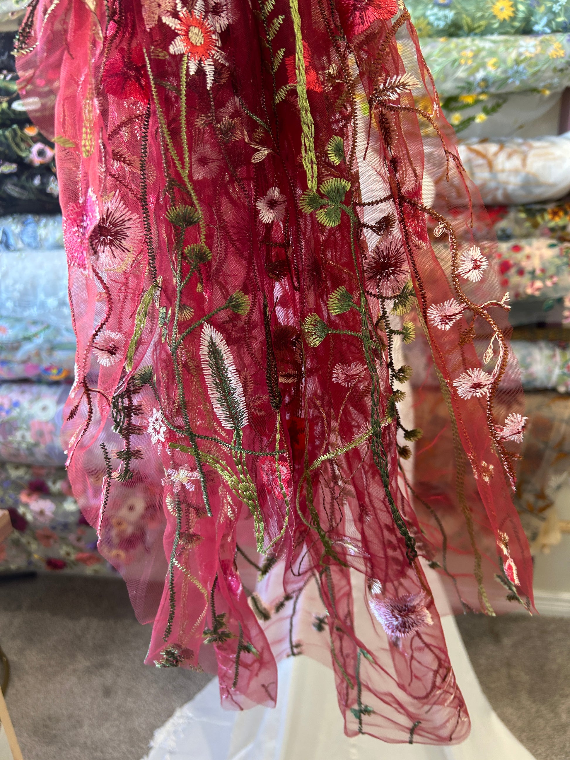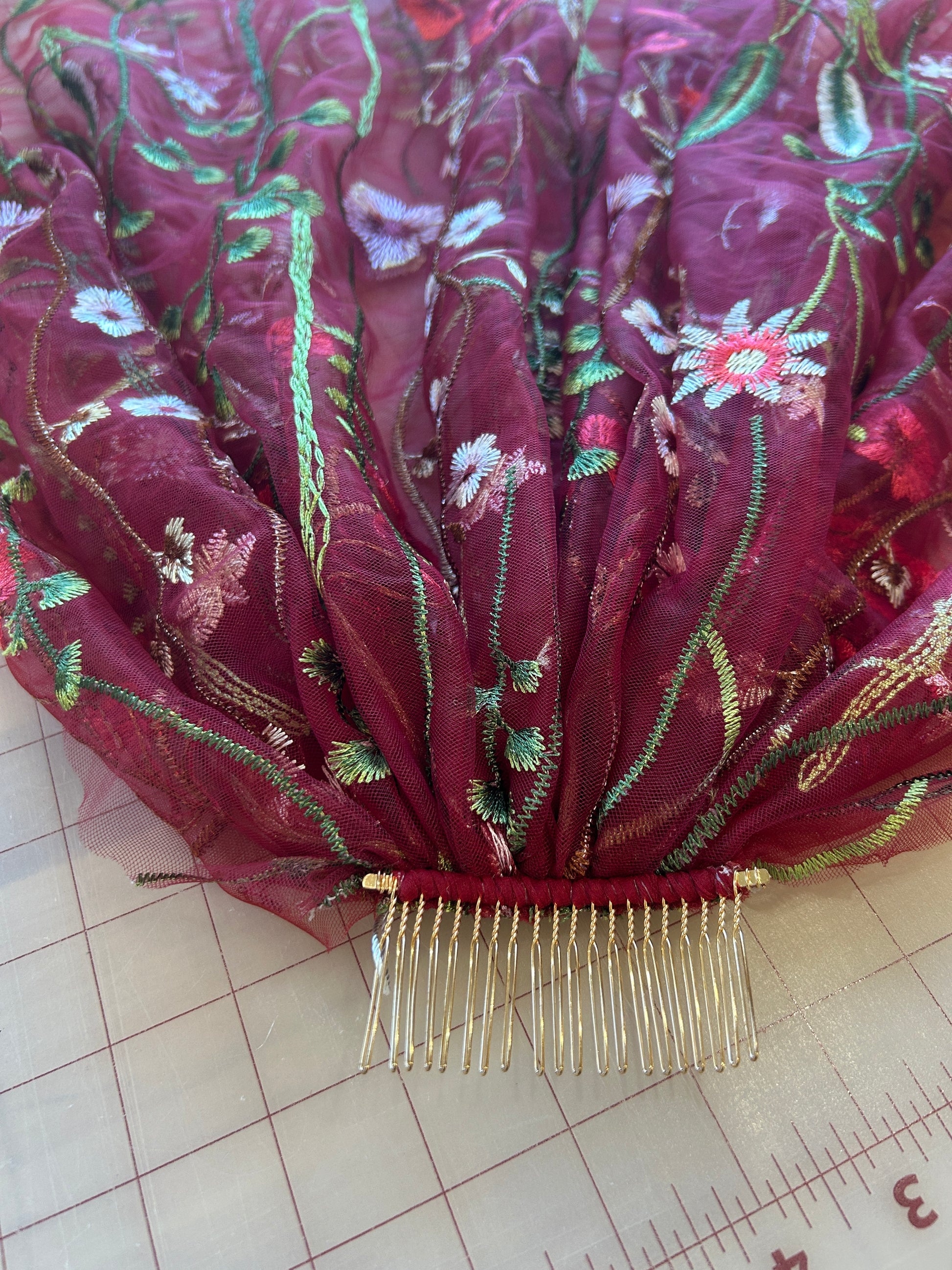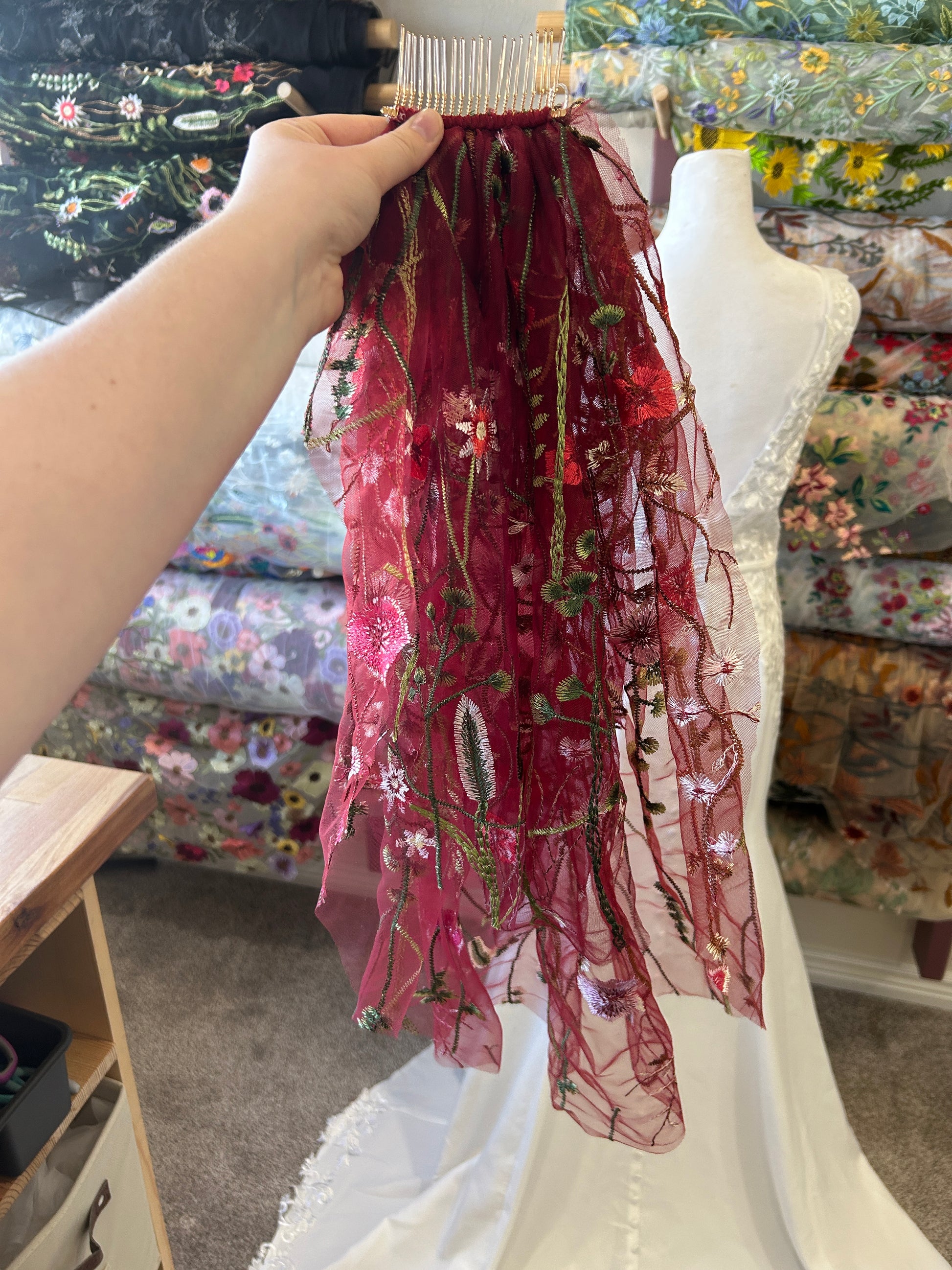 Due to popular lengths like elbow & fingertip lengths, we often are left with a good portion of the bottom fabric that never gets used. Instead of letting it sit in our studio and never be put to use, we are now making "Full Floral" shorter veils.