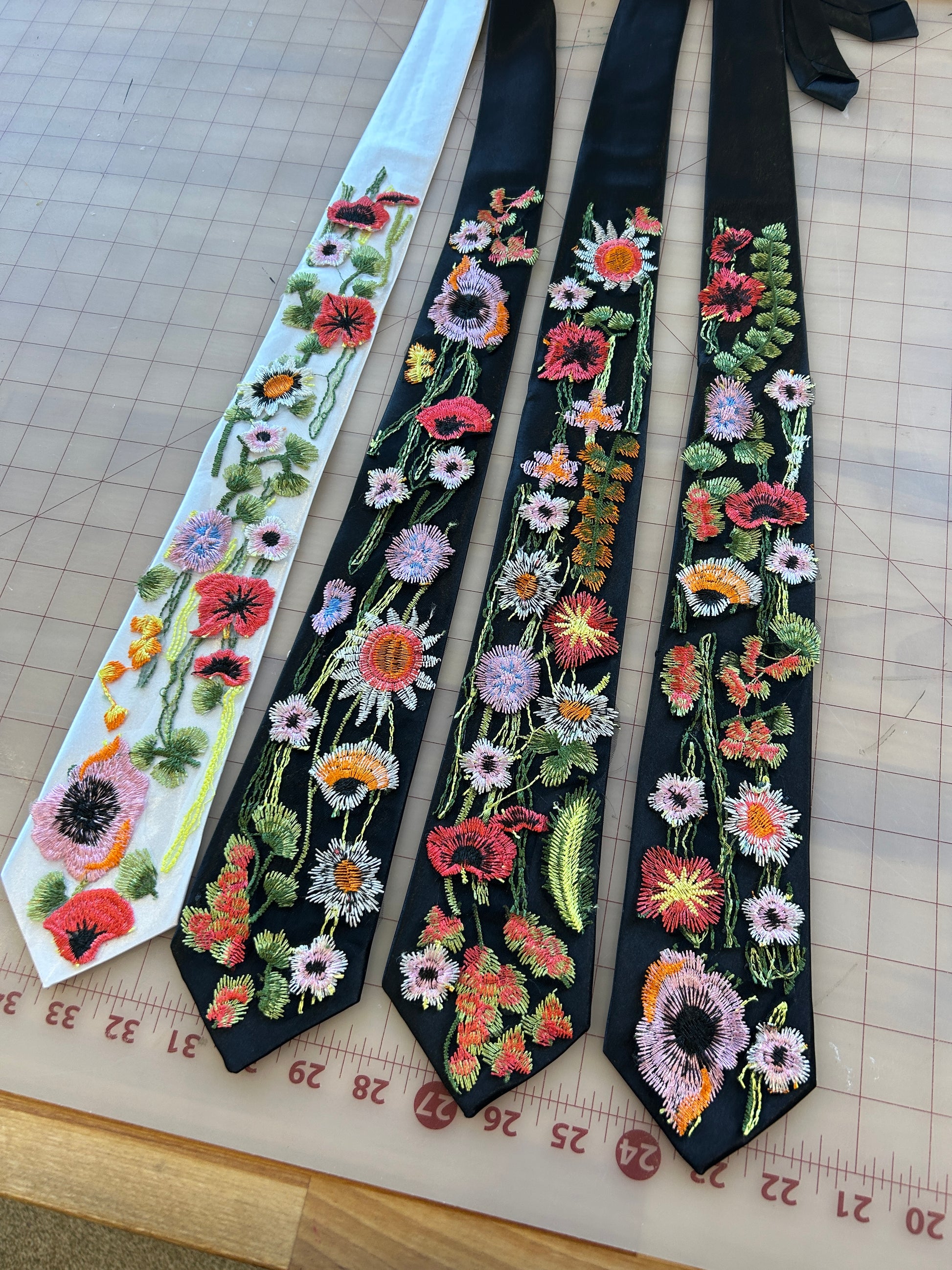 Each product is made to order, not one tie is alike. Ties are made with what embroidery sections are available to use at the time of making your order. Fabric may vary according to availability of materials. Please note that computer screens, lighting & editing may vary in colors.