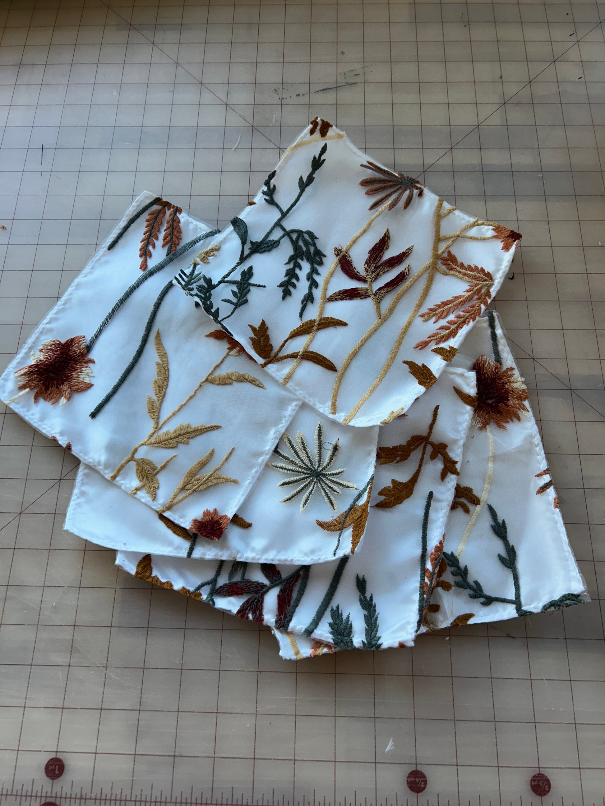 Each product is designed to order, making it unique and not like another. Fabric may vary according to availability of materials. Please note that computer screens, lighting & editing may vary in colors. All embroidery is hand cut from fabric, hand attached and glued to the tie.