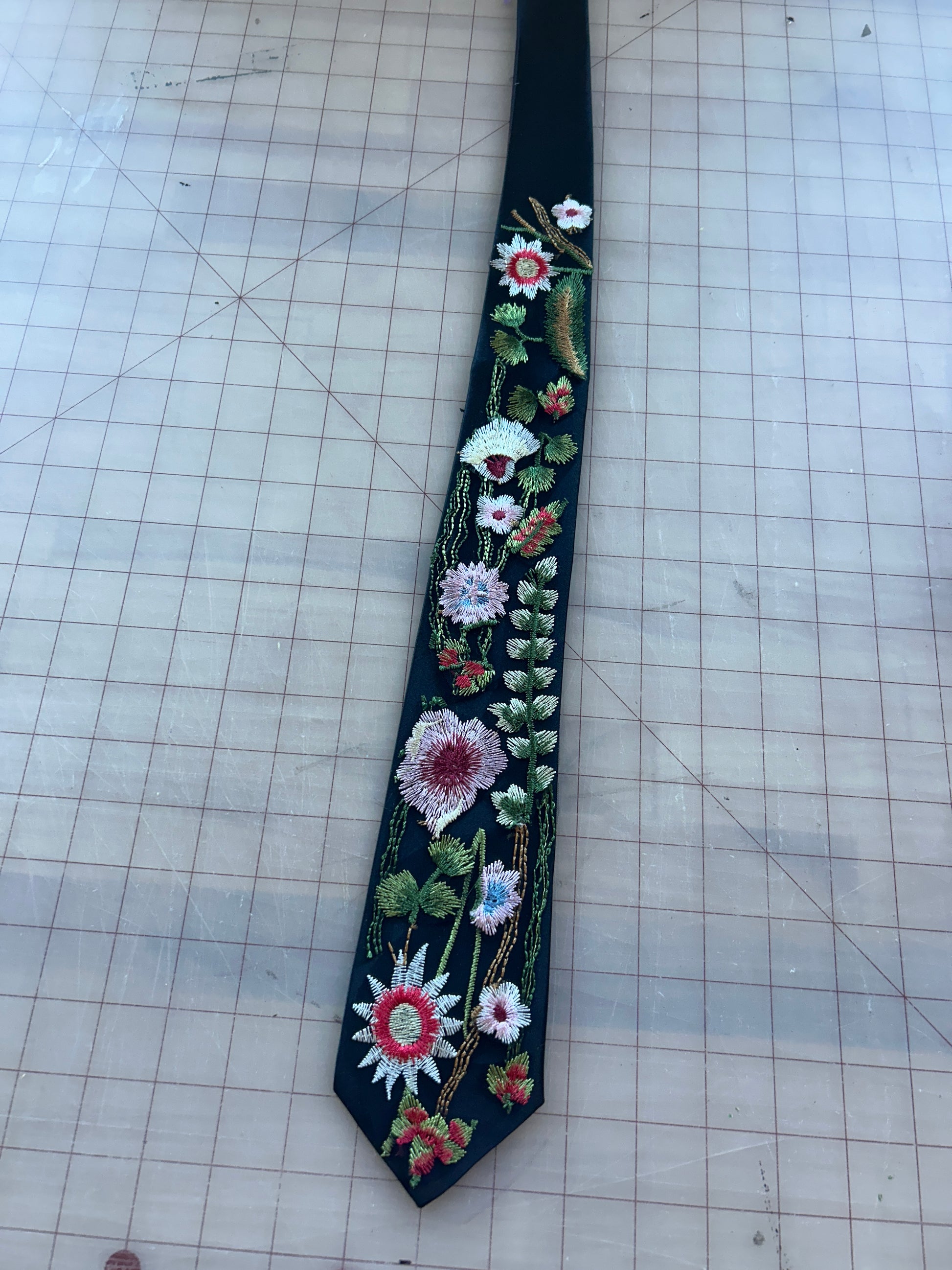 Each product is made to order, not one tie is alike. Ties are made with what embroidery sections are available to use at the time of making your order. Fabric may vary according to availability of materials. Please note that computer screens, lighting & editing may vary in colors.