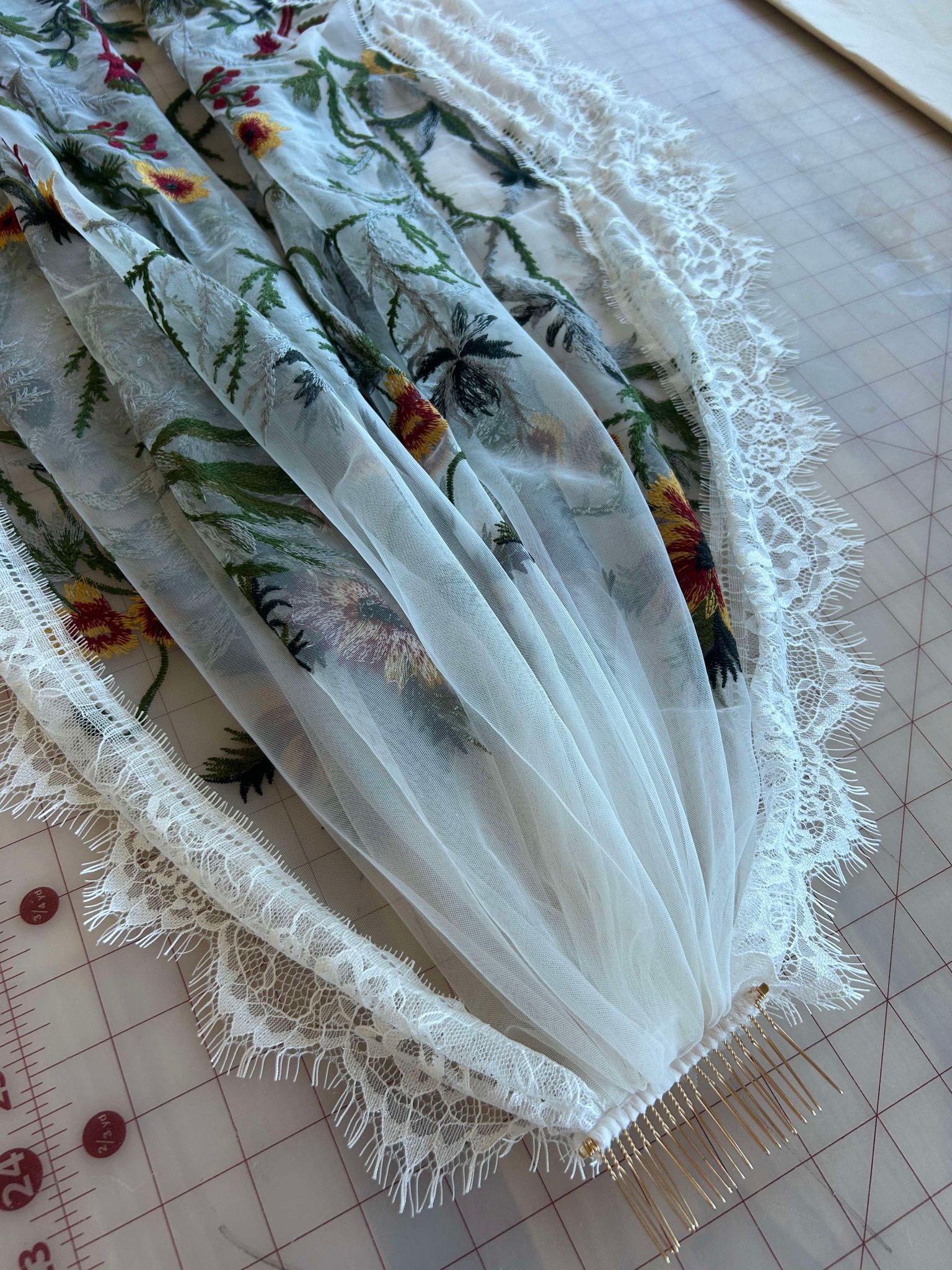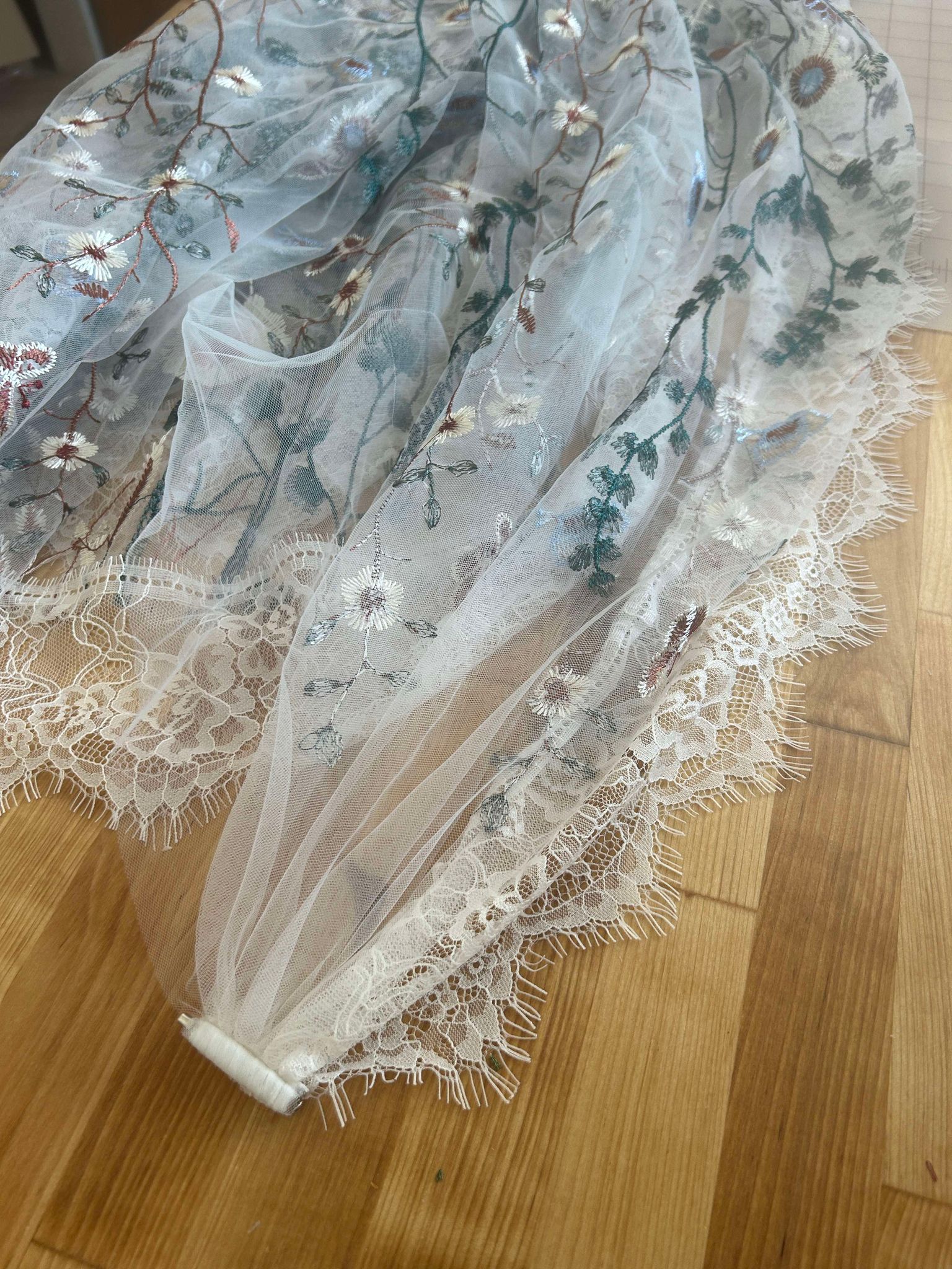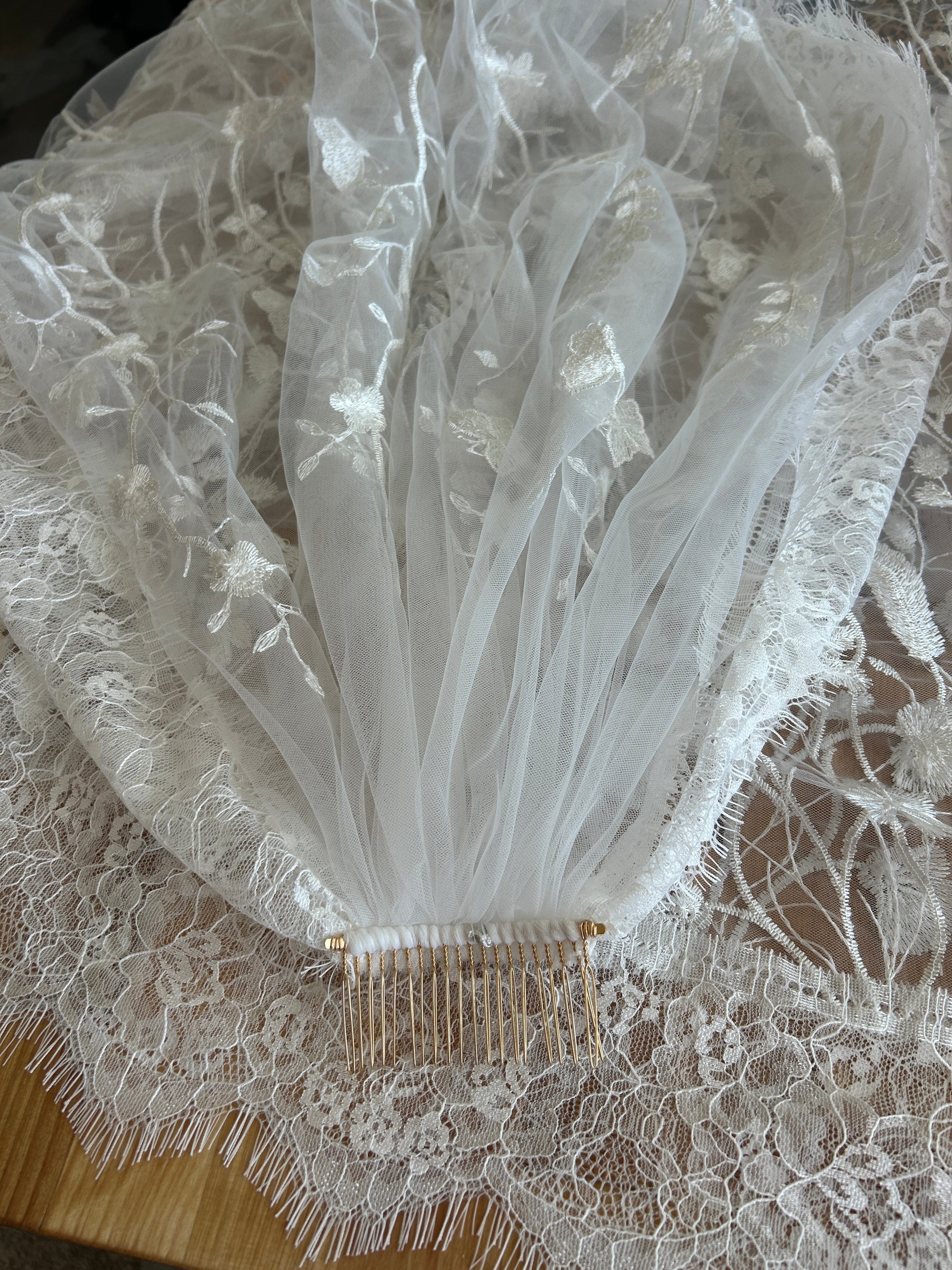 Vintage Lace will be sewn into the edges of the veil. Cost points vary by length, please select the corresponding length you have chosen for your veil.