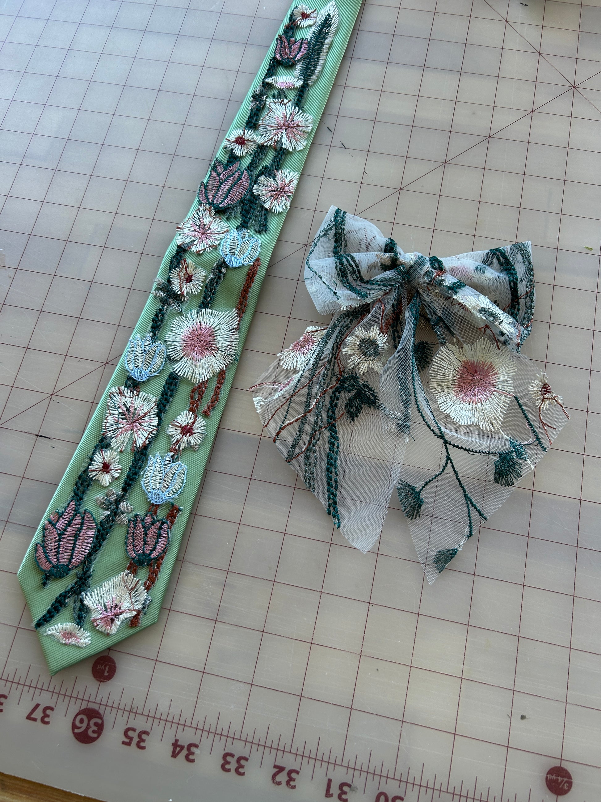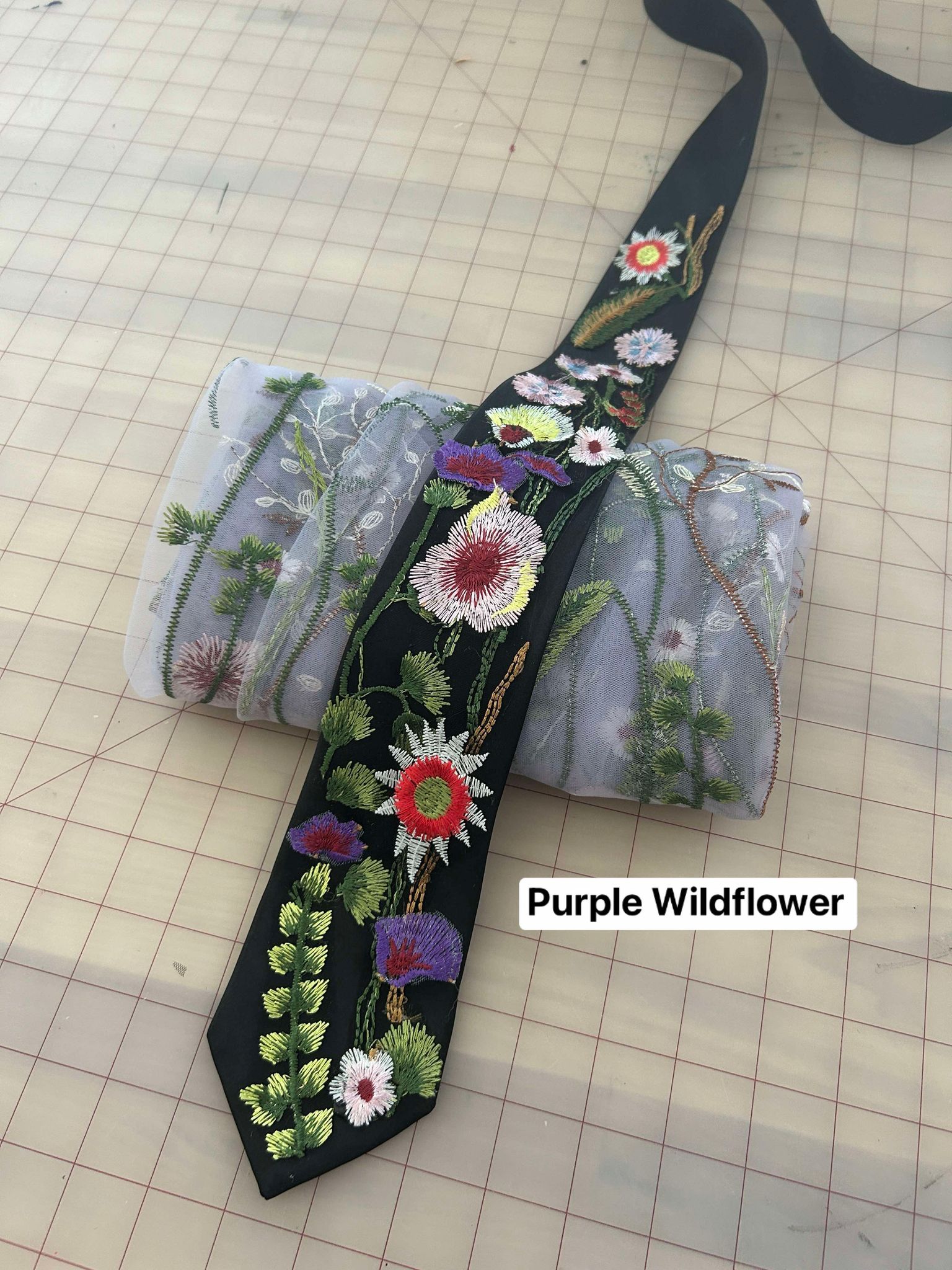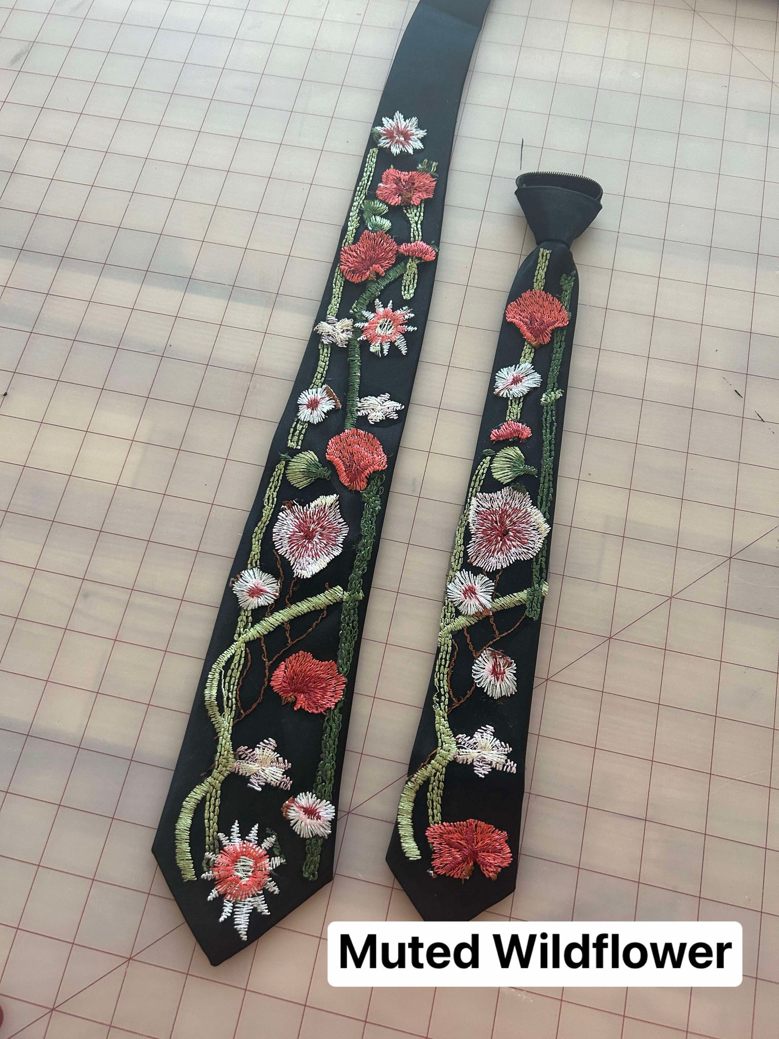 Each product is made to order, not one tie is alike. Ties are made with what embroidery sections are available to use at the time of making your order. Fabric may vary according to availability of materials. Please note that computer screens, lighting & editing may vary in colors.